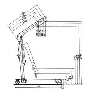 | Hefhoogte max. bij ingeschoven kraanarm | 2.100 mm |